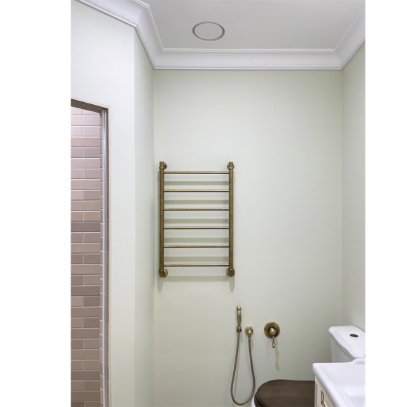 Диффузор монтируется в одной плоскости с гипсокартоном, шпаклюется и красится в цвет потолка.